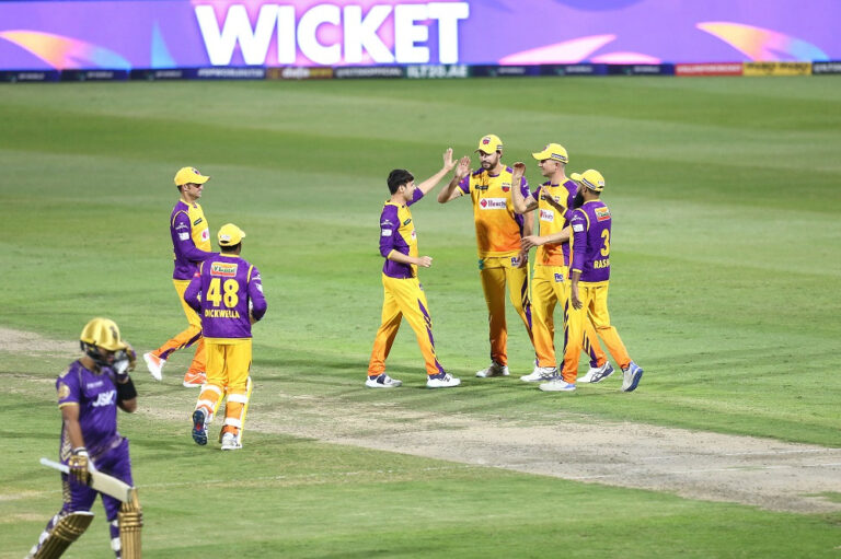 Chasing the target, Abu Dhabi raced to victory in 10.1 overs after their openers Joe Clarke and Michael Pepper put on a 54-run opening partnership in 5.2 overs. UAE’s left-arm pacer Muhammad Jawadullah struck twice to remove Pepper caught by Joe Denly at cover and Alishan Sharafu was also caught by Denly at cover-point for a duck.