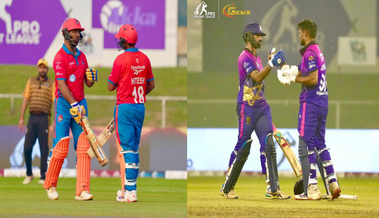 Dubai: The first match of the day at the Pro Cricket League saw the Ghaziabad Bhawani Tigers take on the Gurugram Patriots. Winning the toss, the Bhawani Tigers elected to field first, a decision that paid immediate dividends. Shahbaz Nadeem wreaked havoc with the new ball, claiming 2 wickets in the very first over, leaving the Patriots in early trouble.